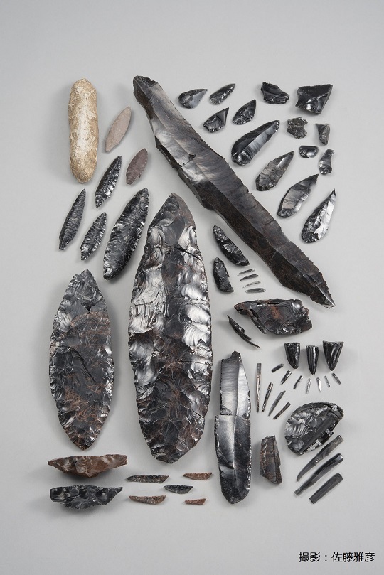 後期旧石器時代前半期の小形剥片石器を主体として石刃技法が顕著な石器群と、同時代後半期の細石刃石器群、および細石刃石器群に優美で精巧な作りの尖頭器を伴う石器群などに分けられ、後期旧石器時代前半期から後半期に至る石器の変遷と組み合わせを明瞭に追うことができる。中でも、全長36.3センチメートルの超大形の尖頭状石器をはじめ、多数の木葉形尖頭器、それらの製作にかかわる数百点の剥片・砕片を接合した接合資料・石核、現在最大長の大形石刃等が注目される。わが国の旧石器時代遺跡出土遺物の中でも、内容・質量ともに群を抜く一括資料である。
